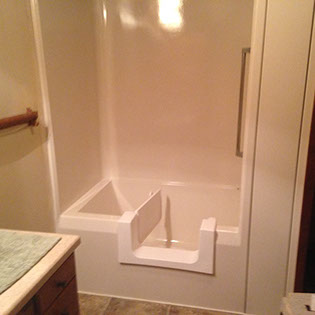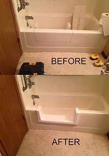 For safer entry into tub! Eliminates costly tear out. Installs on most existing tubs. One day installation.